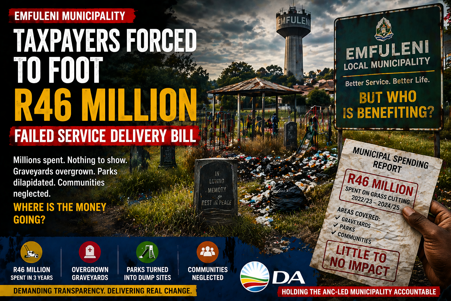 Residents in Emfuleni Local Municipality are effectively paying the price for what has been described as a R46 million service delivery failure, raising serious concerns about accountability and the use of public funds.